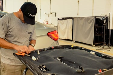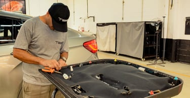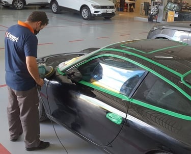 Remoção seletiva de pintura com controle térmico: evita danos aos vidros laminados e adesivos balísticos.